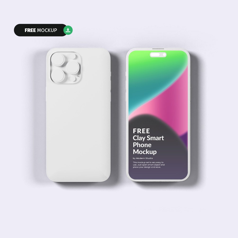 Creative MarketThis is a FREE Clay iPhone 14 Pro mockup template presented by Modern Studio & Mizard Design Co. Present your web UI, app UI, social media, and other designs with a clean and professional appearance with this free mockup template.
