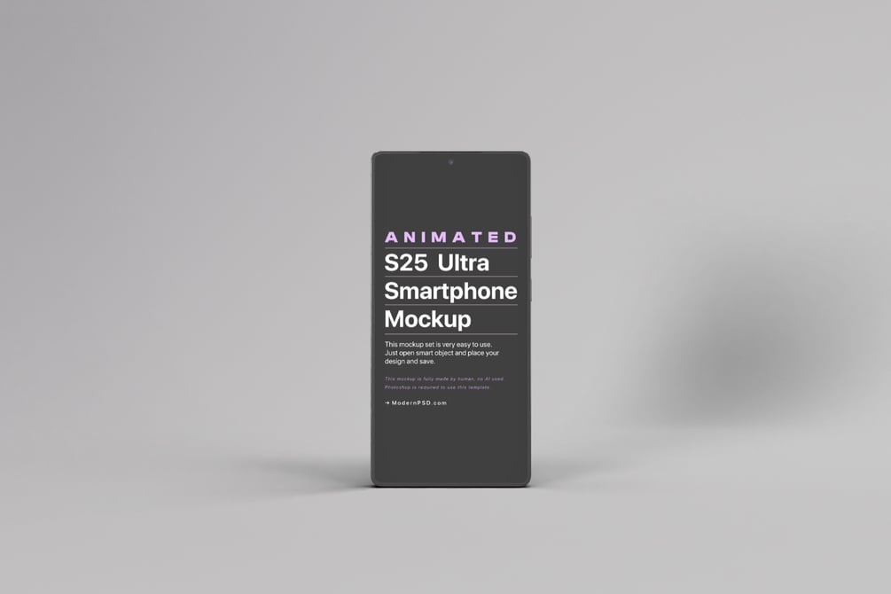 Showcase your designs with this looped animated smartphone mockup, perfect for UI/UX designers, app developers, and marketers. This Full HD (1920x1080) mockup delivers smooth, professional animations that seamlessly loop—ideal for presentations, social media, and portfolios. Best of all, no After Effects required—everything is editable directly in Photoshop!