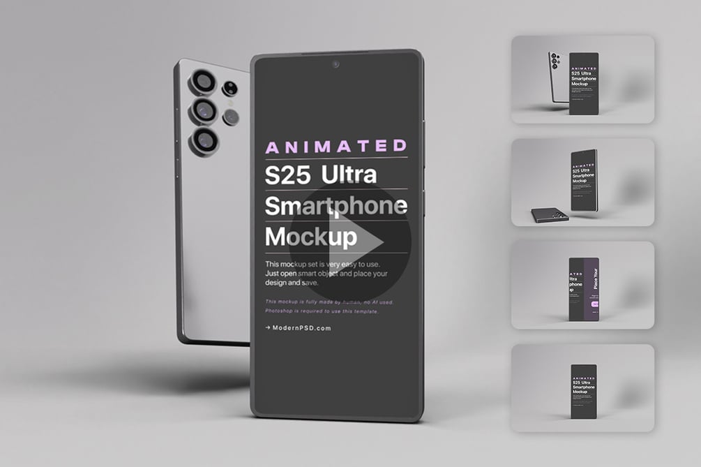 Animated Galaxy S25 Ultra Mockup - 5 Variations